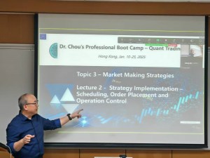 Arranged in 3 topics and 9 lectures, participants in Dr. Chou’s Boot Camp in Quant Trading – Hong Kong learned hands-on experiences and in-depth knowledge in quantitative modeling in Python, VWAP algo design and development, market making strategy design and development, as well as many hours in back-testing such algos and strategies.
